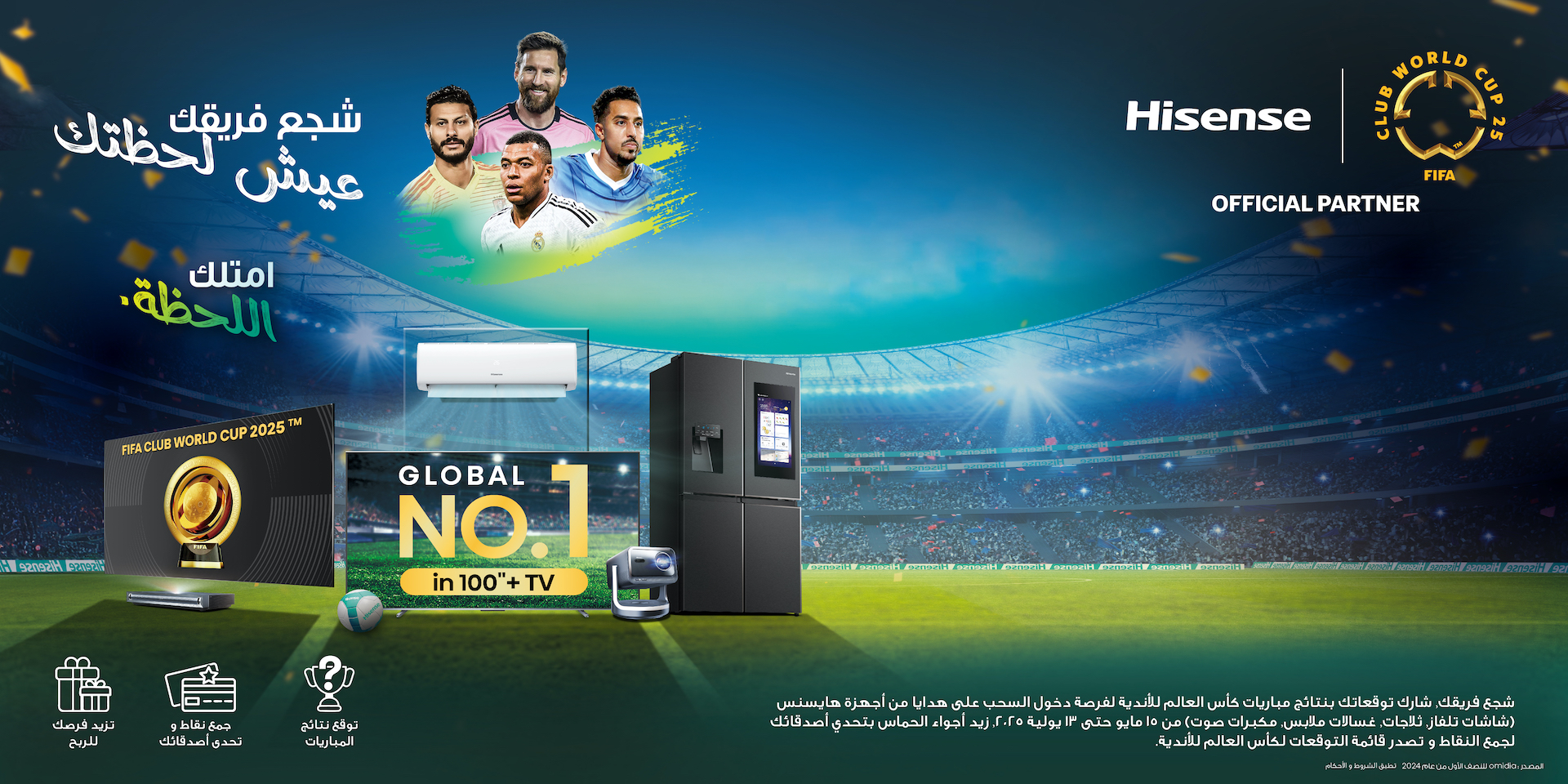 سيتم الإعلان عن الرابحين يوم 13 يوليو خلال وسائل التواصل الاجتماعي لهايسنس السعودية، 30 جائزة تضم شاشات تلفاز، وثلاجات، وغسالات ملابس، ومكبرات صوت من هايسنس.